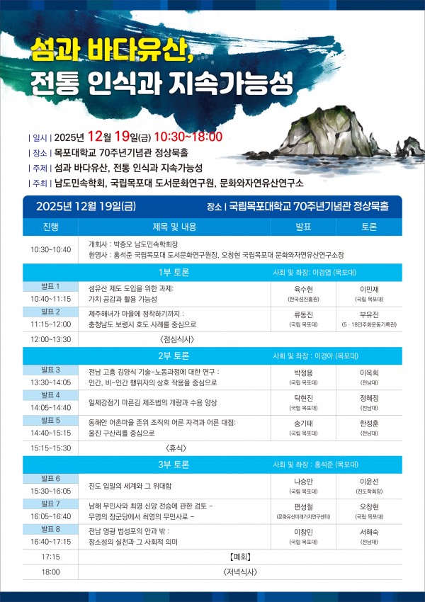 ∎주최 : 목포대학교 도서문화연구원, 남도민속학회, 목포대학교 문화와자연유산연구소